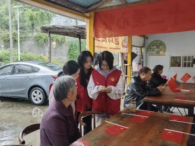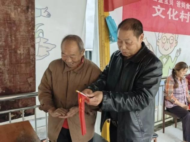 活动伊始,来自安康学院园林专业的三位志愿者杨梓涵、王亚琳、张烨迅速行动,为助餐点悬挂主题横幅,营造出浓厚的节日氛围。老人们满怀热忱,亲手组装一面面鲜红的国旗,他们神情专注、动作细致,指尖的每一次折叠与固定,都饱含着对祖国的深切热爱与美好祝福。现场欢声笑语不断,鲜艳的国旗与老人们的笑容相映成趣,节日的喜悦在空气中悄然蔓延。