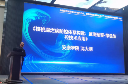 会议围绕产业升级改造、油脂健康、特色油料加工、油脂加工领域与健康食品展开研讨,10余名专家做了精彩的报告。我院沈大刚副教授围绕核桃腐烂病的生物学特性、流行影响因素、监测预警与绿色防控体系构建及该体系的有效性与推广价值进行了深入报告。沈老师的报告得到了与会人员的关注,相关专家表示了后继与我校开展核桃病害防控方面合作的意向。