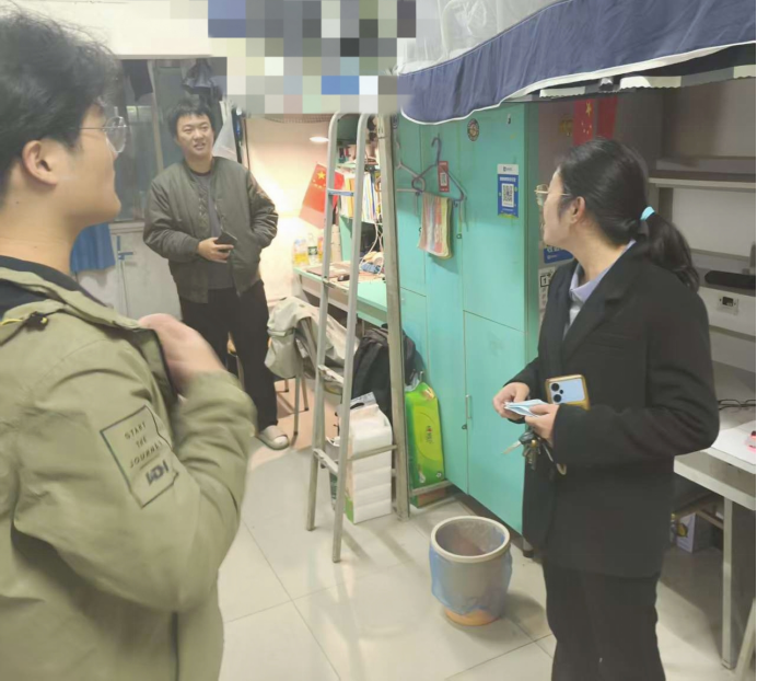 班会结束后,11月9日晚,程晓梅深入学生宿舍进行了走访查看,仔细询问了同学们的住宿情况、生活适应状况以及遇到的困难,并就宿舍安全、内务整理、文化建设等方面进行了现场指导,叮嘱同学们要合理安排作息时间,注意用电安全和财产安全,营造温馨、整洁、安全的居住环境,鼓励大家互帮互助,共同进步。走访过程中,老师与同学们亲切交流,氛围融洽。