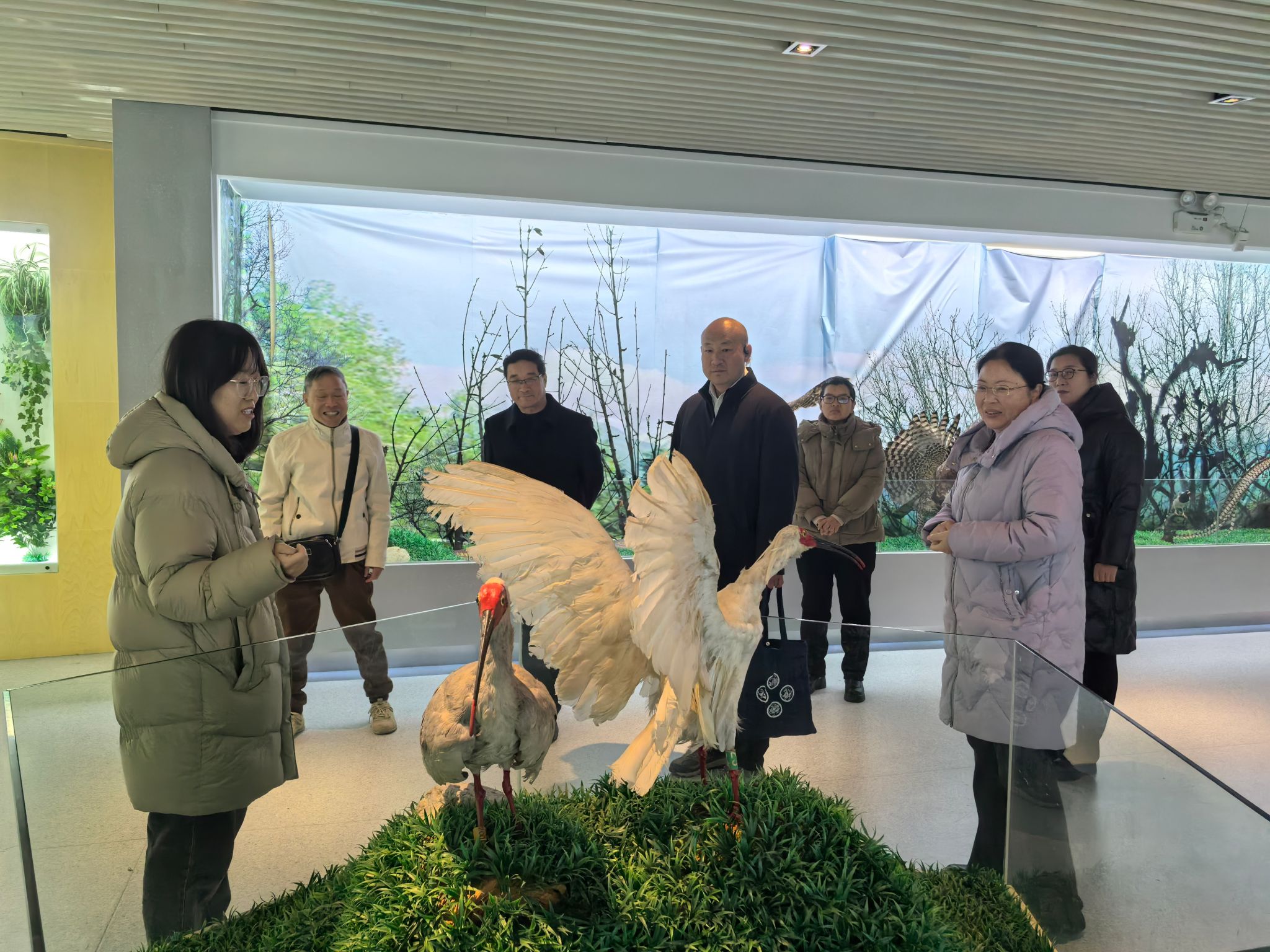 农生学院班子成员热情接待了成英支站长和张京国研究员等一行人,并邀请各位老专家参观我校标本馆,并进行了简短的捐赠仪式。院长杨芳代表农生学院接受了《同框五只白鹳》照片,党总支书记孙保本向成英支站长颁发了捐赠证书。