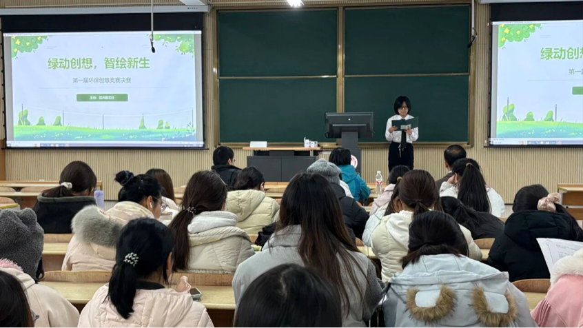 2025年12月15日晚上,“绿动创想,智绘新生”第一届环保创意竞赛决赛在江北校区1204教室顺利举行。此次竞赛以“用奇思妙想为地球发声,用创新设计为环保赋能”为主题,由花卉园艺社主办。农生学院园林专业教师蒲小龙、张海军、张桂粉担任评委。