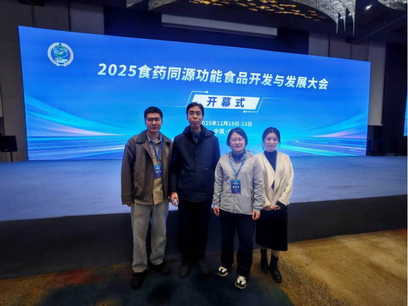 12月19日至21日,2025食药同源功能食品开发与发展大会在成都隆重举行。本次大会汇聚了来自全国高校、科研院所、行业协会与企业界的众多专家学者,围绕食药同源功能食品的研究、开发、产业应用及政策标准等议题展开深入交流与研讨。我院教师王中兴、张桂粉、吴冲和袁月一行四人参加了本次大会。