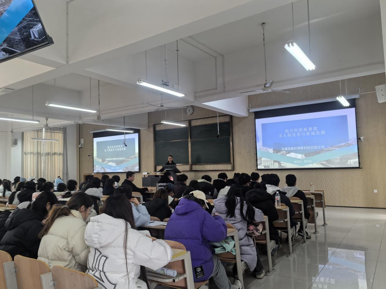 2025 年 12 月 24 日,农生学院园林系以 “第二课堂” 为载体,邀请安康市博联科技有限公司无人机团队,为 2024、2025 级园林专业全体同学开展 “低空经济与无人机技术应用” 主题交流活动。活动在学院 1301 教室启动,专任教师张心愿、沈古理、张铭珺、张祥全程参与,通过 “理论讲解 + 外场实操” 的沉浸式教学,让同学们在第二课堂中收获专业技能与行业视野。