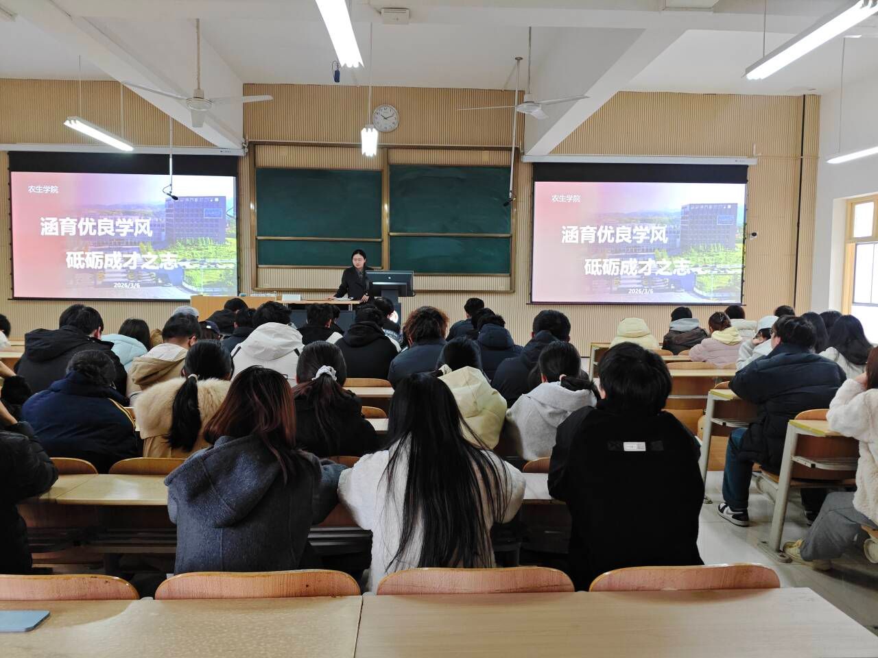 本次班会立足大三下学期学业特点与成长需求,郭杨娟从理想信念塑造出发,引导同学们将个人成长规划与专业学习、行业发展相结合,深刻认识大三下学期在学业提升、未来选择中的重要作用。她强调,全体同学要及时调整状态,摒弃假期松懈心态,严守课堂教学纪律,科学规划课余时间,以“笃学,尚行,励志,创新”为准则,让优良的学习氛围成为专业发展的坚实支撑。