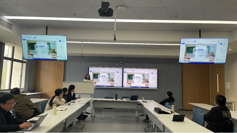 随后,王老师以自己正在建设的《生物化学》课程为例,展示了基于雨课堂平台的教学实践情况。该课程目前已在实际教学中投入使用,王老师现场演示了智能备课、课堂互动、数据采集、资源推送等功能模块的操作流程。她表示,通过雨课堂平台,能够较好实现课前预习、课中互动、课后反馈的闭环管理,有效提升了教学效率。同时,她也指出课程目前仍存在部分环节有待优化,包括知识图谱的梳理、线上学习数据与线下教学衔接需进一步细化等问题,后续将结合教学反馈持续改进。