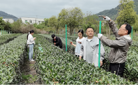 工作现场,科研团队结合前期平利各乡镇茶园调研的实际情况,对遮阴网搭建高度、遮光率控制、固定方式等关键试验环节逐一明确标准、细化技术要求,确保试验条件符合科研规范,从源头保障后续试验数据的准确性。参与实践的茶学专业学生全程参与配合,在现场实操中锤炼专业技能、积累一线产业经验。